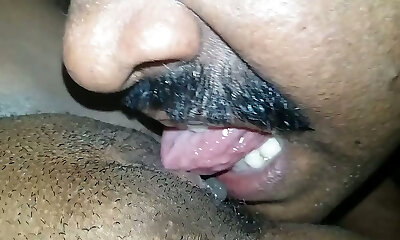Horny mustached buddy eats his wifey's Indian pussy well