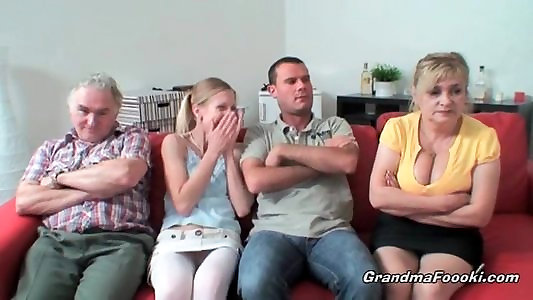 مادر بزرگ واقعا دوست دارد به یک نونوجوان دیک در داخل او