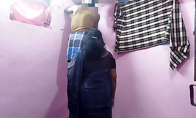 while Tamil granny wearing saree the grandson gets Super-steamy & Tieds Her hand and plows her Big butt, next day again aunty on her bed