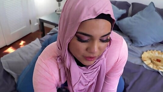 timido curvy procace musulmano teen in hijab chiesto il suo passo-cugino a prendere la sua verginità