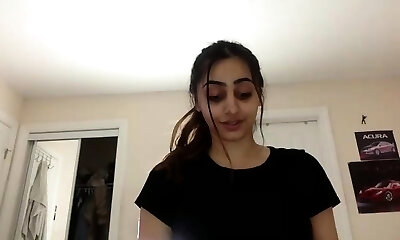 Exotic Indian black-haired took off her panties to masturbate, after she displayed us her tits