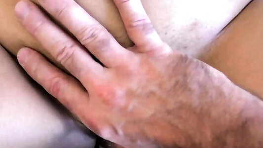 Massaging hairy pussy with cumshot instead of oil