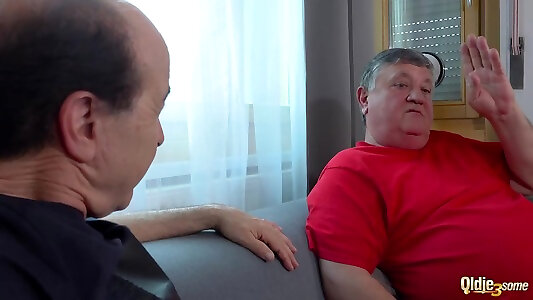 teen prende difficile scopata e dà footjob a 2 grandpas