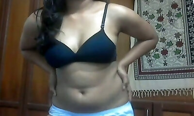 Indian GF In Blue Bra Showing Shaved Pussy On Webcam